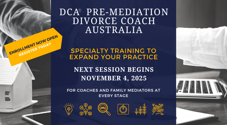 The Pre-Mediation Divorce Coach Training Intensive at Divorce Coaches Academy is the first of its kind, specifically designed for the professional practicing Certified Divorce Coach. If you are interested in expanding your client reach and offering a highly skilled program within your practice, this intensive training is for you.